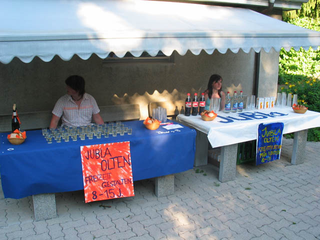 Nach dem Gottesdienst gab es einen Apéro im Pfarreigarten, oder mit dem "Lago di Merlo" genannten Teich. Der Apéro wurde von der JuBla Olten serviert.