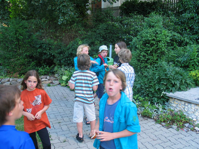 Die Kinder spielten in der Zwischenzeit im Garten
