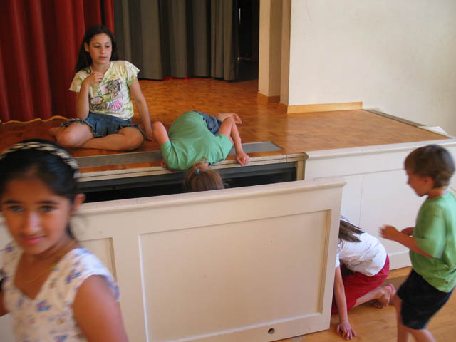 Die Kinder haben die Bühne des Josefsaals zum spielen entdeckt