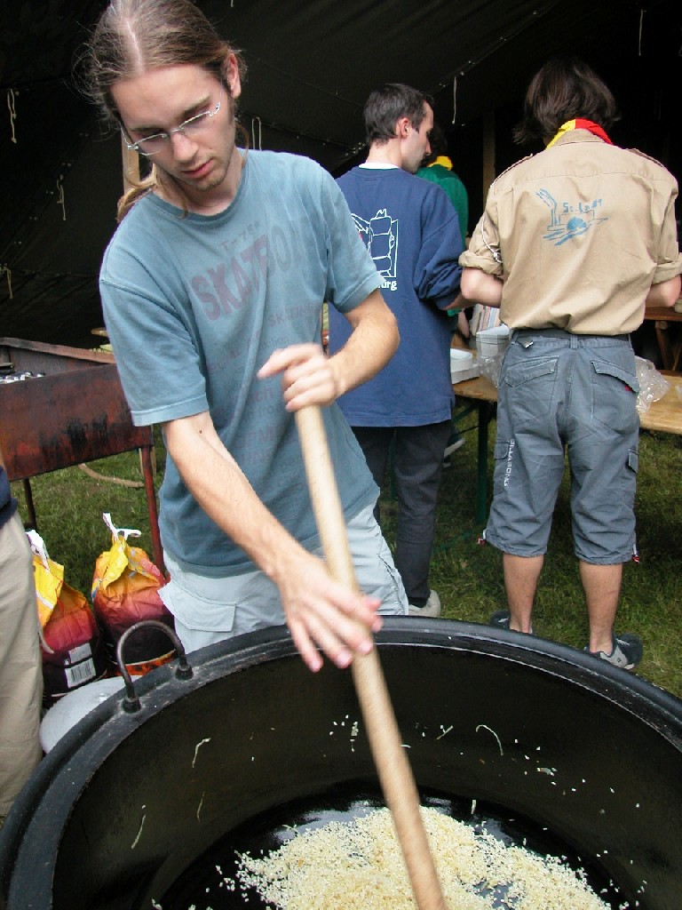 Auch Gümper kam Risotto kochen helfen. Hier rührt er das Risotto gerade mit viel Liebe...